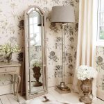 Hiasan bertema Provencal lain yang sesuai adalah hiasan latar bunga. Motif kecil dalam bentuk karangan bunga, sketsa atau bunga individu dihasilkan semula pada kanvas dengan cara yang huru-hara. Pengecualian adalah bentuk geometri. Kertas dinding dengan burung eksotik, popi besar, mawar burgundy yang kaya, gambar abstrak yang terang, motif bandar dan hiasan hiasan hiasan besar sama sekali tidak sesuai dengan motif Provencal.