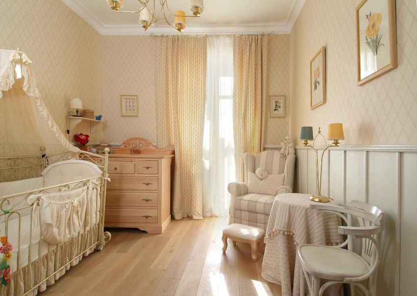 Reka bentuk bilik kanak-kanak: Foto kertas dinding gaya Provence