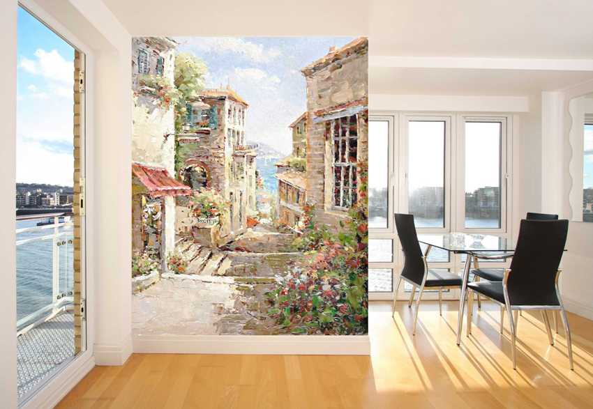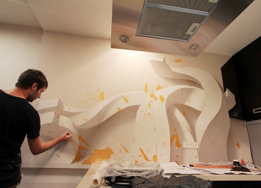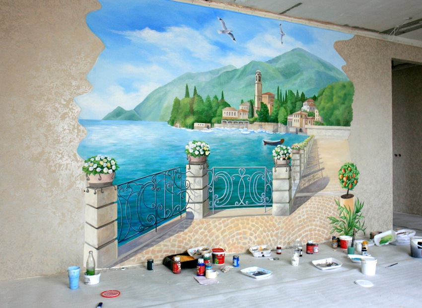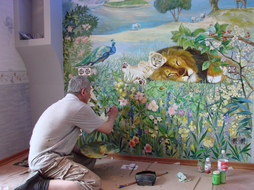 Lukisan dinding di pedalaman akan menyelesaikan banyak masalah ruang, memberikan apartmen dengan gaya yang unik dan tersendiri. Kemudahan pelaksanaan dan kos bahan yang berpatutan membolehkan kerja-kerja penamat jenis ini dapat dilakukan sendiri.