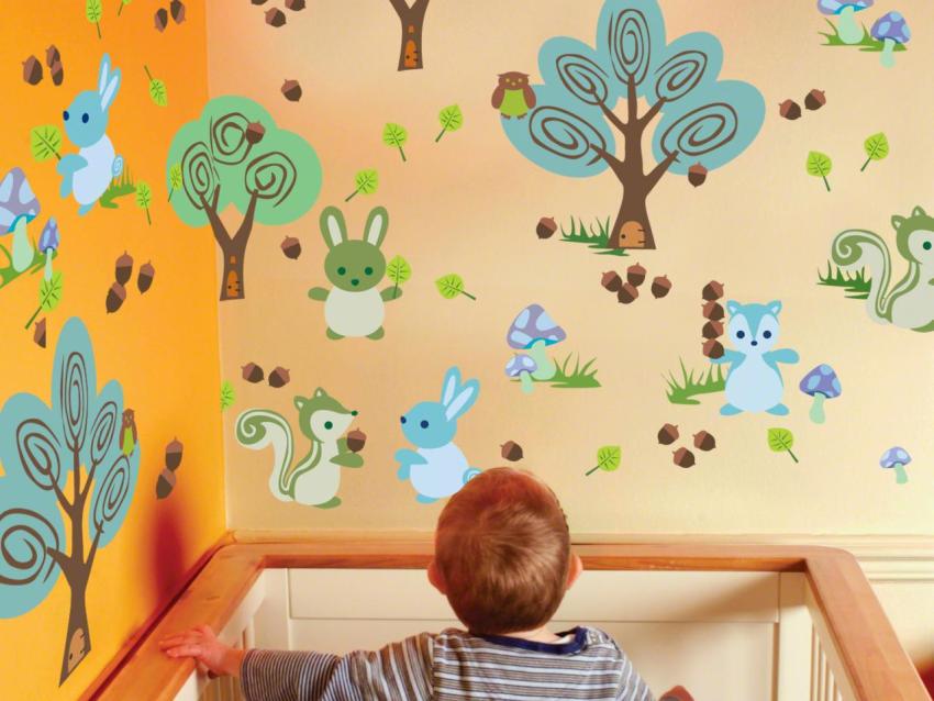 Lukisan dinding jenis ini adalah yang paling mudah dan bagus untuk pemula dan juga kanak-kanak. Dengan bantuannya, anda boleh membuat reka bentuk yang terang dan tidak biasa. Anda boleh membeli stensil untuk mengecat dinding dan hiasan yang sudah siap, atau anda boleh membuatnya sendiri.