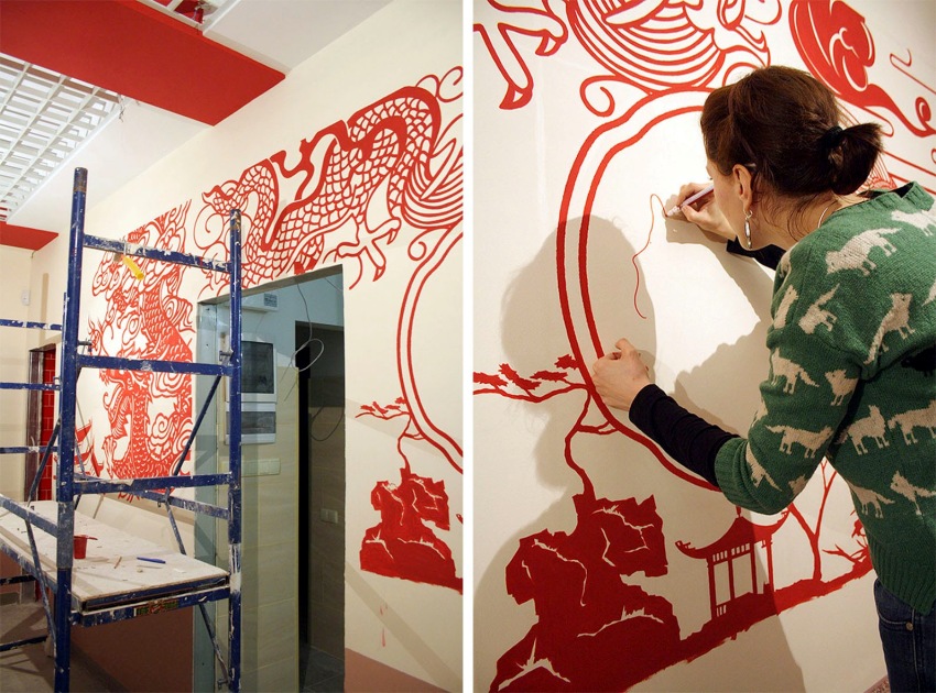 Lukisan seni - membuat lukisan di dinding menggunakan gaya dan warna yang berbeza. Ini termasuk tingkap kaca patri, lif, gambar, mural, dllLukisan yang kompleks mesti dipesan dari seniman profesional, sementara grafik sederhana boleh dibuat sendiri.