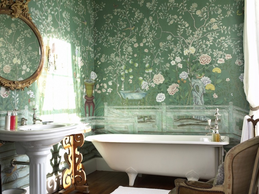 - moden. Gaya ini sangat popular di kalangan pereka. Ini disebabkan oleh kelembutan warna, jarak gambar. Selalunya, ia didominasi oleh motif dengan garis cahaya bergelombang. Gaya lukisan dinding dengan bunga ini sesuai dengan unsur-unsur dari bahan semula jadi;
