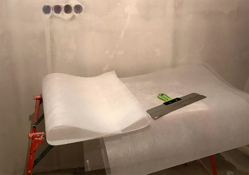 Langkah penting ialah penyambungan jalur bersebelahan dengan teliti. Sambungan juga harus diresapi dengan gam dan ditekan dengan baik dengan spatula. Kemasan yang telah selesai hendaklah kering sepenuhnya, yang akan memakan masa 2 hari. Anda boleh melekatkan bahan sendiri atau menjemput pakar untuk menyelesaikan permukaannya dengan gentian kaca. Harga per m2 bermula dari 150 rubel.