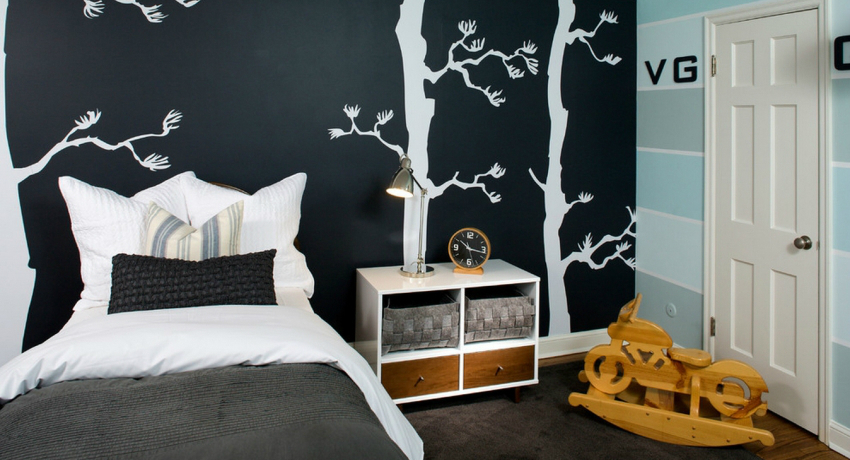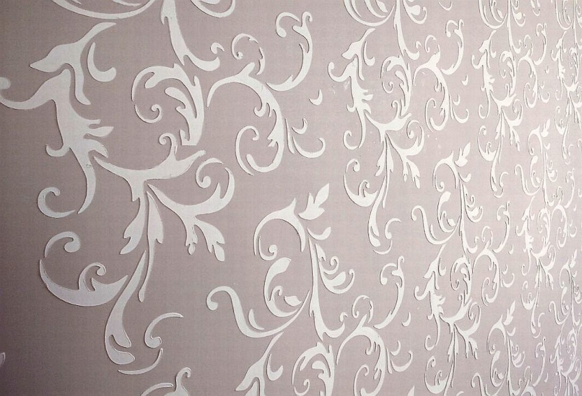 Di samping itu, penggunaan stensil membolehkan anda menambahkan kelantangan ke permukaan, memperluas ruang secara visual dan melancarkan penyelewengan di dinding. Templat adalah kaedah terbaik untuk menukar ruang tanpa pelaburan yang signifikan. Pemiliknya dapat menunjukkan kreativiti dan memberikan keunikan khas kepada bilik.