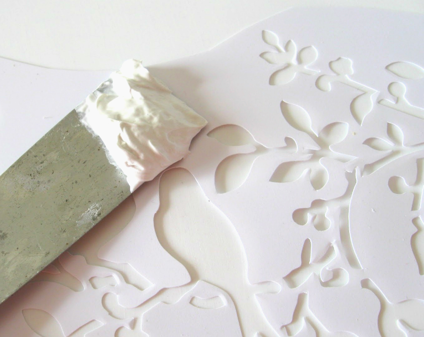 Untuk menggunakan plaster hiasan atau dempul, lebih baik menggunakan stensil yang diperbuat daripada plastik atau kadbod tebal
