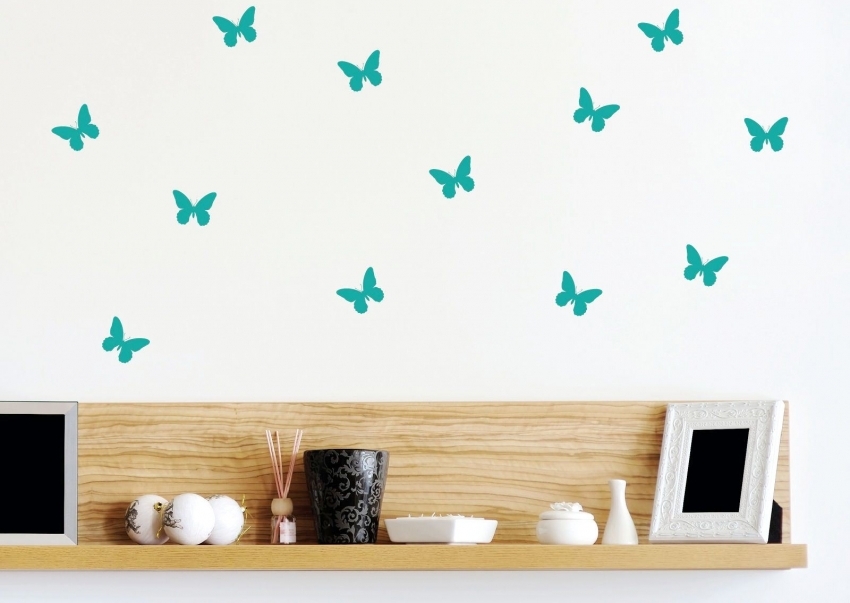 Rama-rama adalah hiasan lain yang popular untuk menghias bilik. Mereka kelihatan hebat di dinding bilik tidur, dan rama-rama berwarna-warni akan menggembirakan anak. Untuk menambahkan semangat pada reka bentuk dapur, letakkan gambar wanita bersayap di sana. Sangat mudah untuk membuat stensil kupu-kupu di dinding dengan tangan anda sendiri.