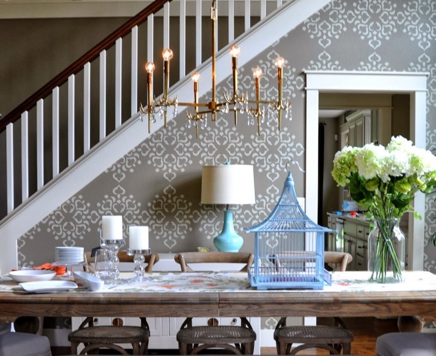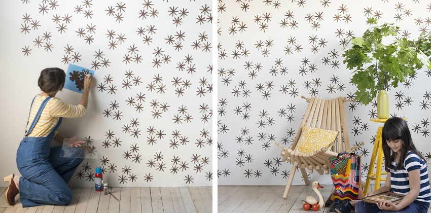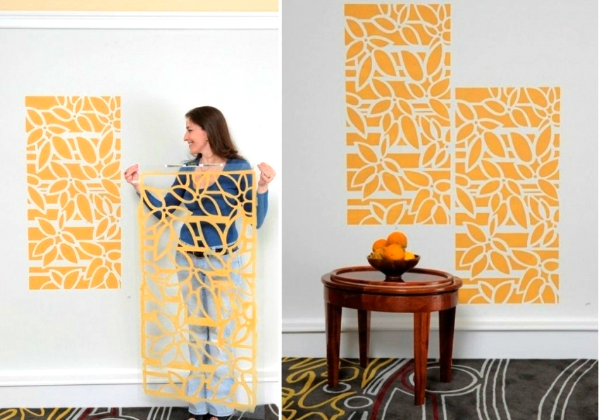 Dengan menggunakan stensil sederhana, anda boleh mengubah bahagian dalam bilik dan menjadikannya lebih menarik