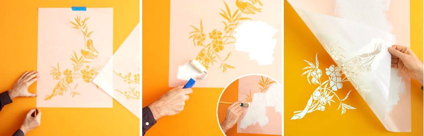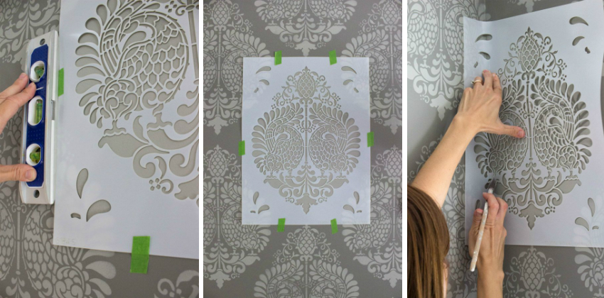 Terdapat templat universal yang akan kelihatan hebat di mana-mana bilik. Kadang kala stensil digunakan untuk menyesuaikan soket, sendi dinding atau ceruk.