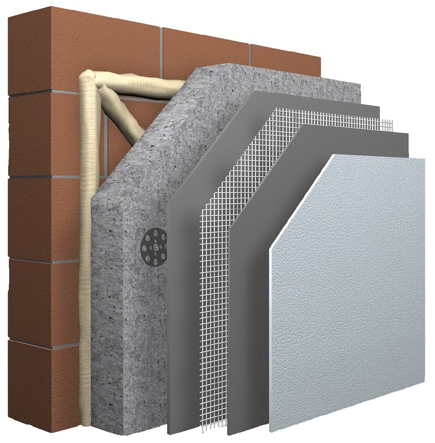 Anda boleh mula melepa selepas gam betul-betul kering. Untuk melakukan ini, mesh penguat terpaku di atas plat busa. Kemudian sapukan lapisan mana-mana plaster untuk lukisan atau komposisi plaster hiasan. Teknologi penebat dinding dengan plastik busa kelihatan serupa dari luar di bawah fasad berventilasi. Hanya dalam kes ini panduan digunakan, di mana busa dilekatkan.