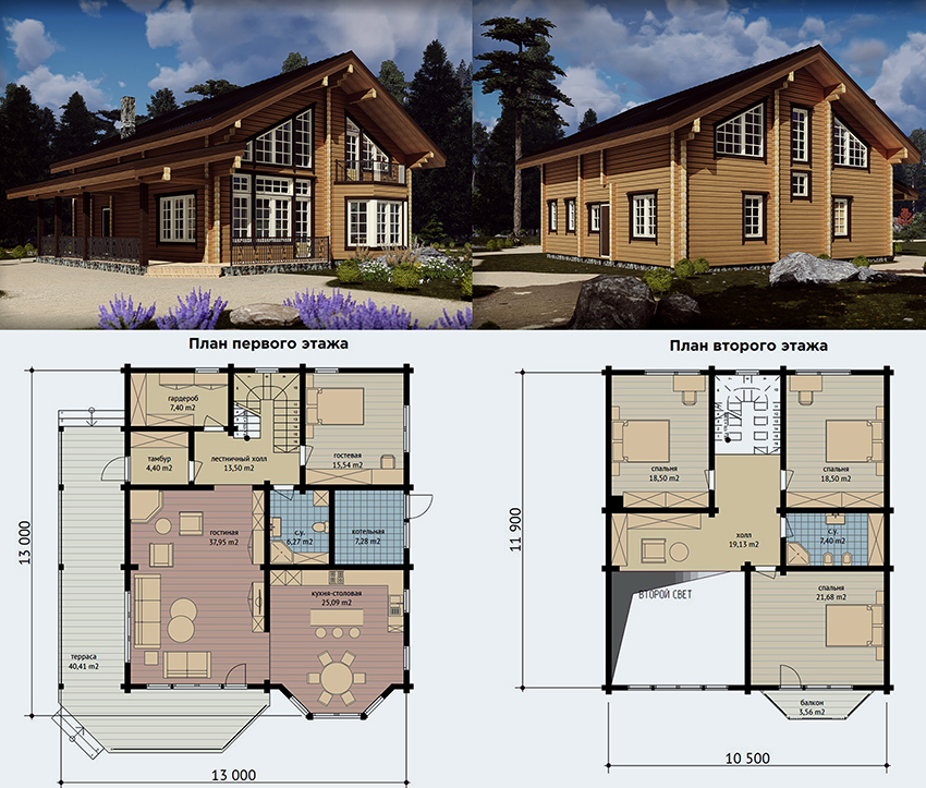 Banyak syarikat pembinaan membenarkan anda memesan rumah turnkey murah yang terbuat dari kayu berlapis terpaku dengan rakaman besar. Projek bangunan dua tingkat seluas 100-200 m² boleh merangkumi: