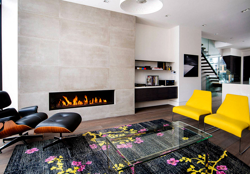 Banyak pemilik rumah berpegang pada kawasan pedalaman yang dicirikan oleh kesederhanaan. Walau bagaimanapun, gaya chalet Alpine sangat popular. Perapian dengan zon TV, yang biasanya diletakkan tepat di atasnya, akan sesuai dengan persekitaran seperti itu.