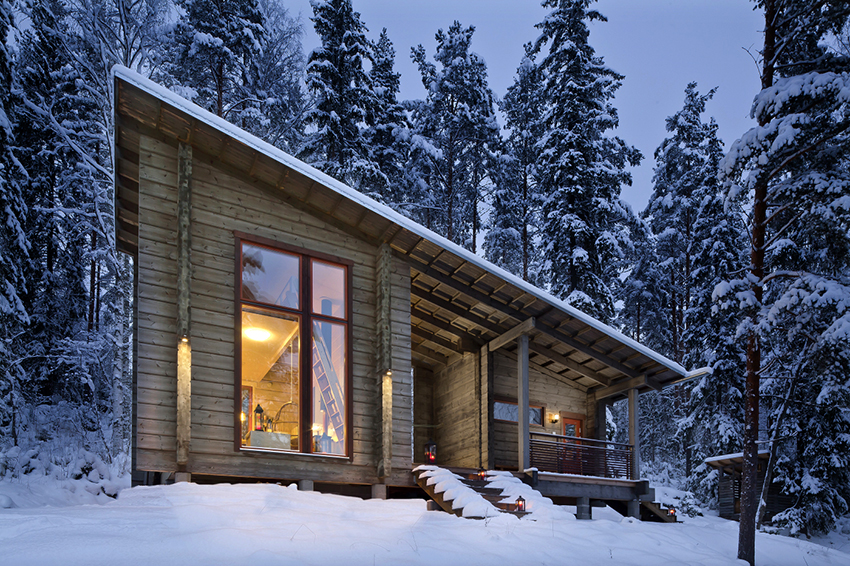Bangunan yang dibina daripada kayu venir berlamina bukan hanya mesra alam - mereka secara harfiah "menghirup" alam semula jadi, yang dapat dilihat dengan sempurna dari tingkap besar. Mereka mengeluarkan bau dan kesegaran yang menyenangkan dari dinding kayu dan mewujudkan suasana kehangatan dan keselesaan yang unik berkat iklim mikro khas. Bangunan seperti itu tidak kalah dengan pangsapuri bandar dari segi keselesaan.