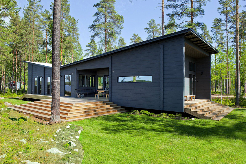 Rumah yang diperbuat daripada kayu venir berlamina adalah mesra alam, sementara kelihatan cantik dan menyenangkan secara estetik