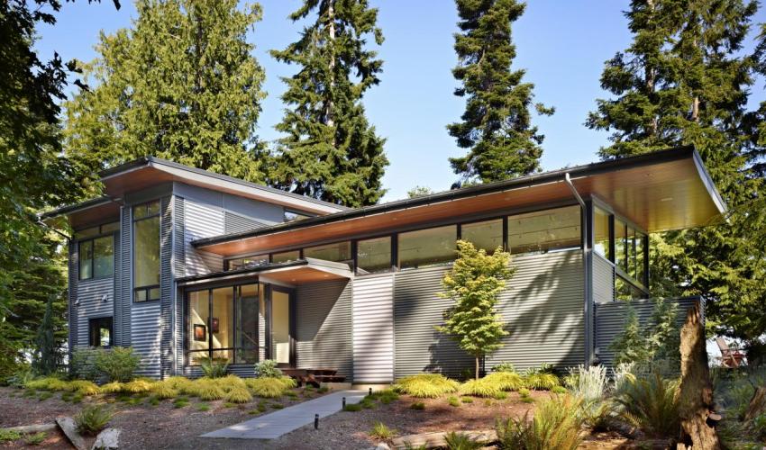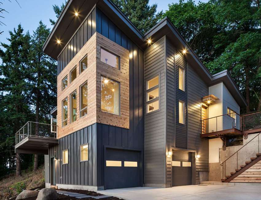 Bahan ini cukup ringan, tidak menimbang struktur, membolehkan anda membuat pelbagai pilihan untuk penyelesaian reka bentuk. Fasad rumah akan kelihatan hebat dengan hampir semua reka bentuk landskap, dipangkas dengan sisi. Gambar rumah persendirian yang dijubin dengan cara ini terdapat di bawah. Juga, pengeluar bersedia menawarkan sisi akrilik. Ia sangat mirip dengan vinil dalam penunjuk kualiti, tetapi sedikit berbeza dalam teknologi pembuatan.