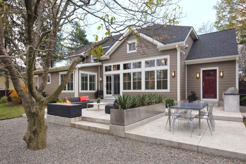Foto menunjukkan betapa menarik dan bergaya penampilan sampingan. Pengilang boleh menawarkan pelapisan batu, bata, balok kayu. Dari luar hampir mustahil untuk menentukan keaslian bahan. Gabungan panel sisi dengan pelbagai warna dan tekstur akan membolehkan anda mencipta idea reka bentuk yang paling kompleks.