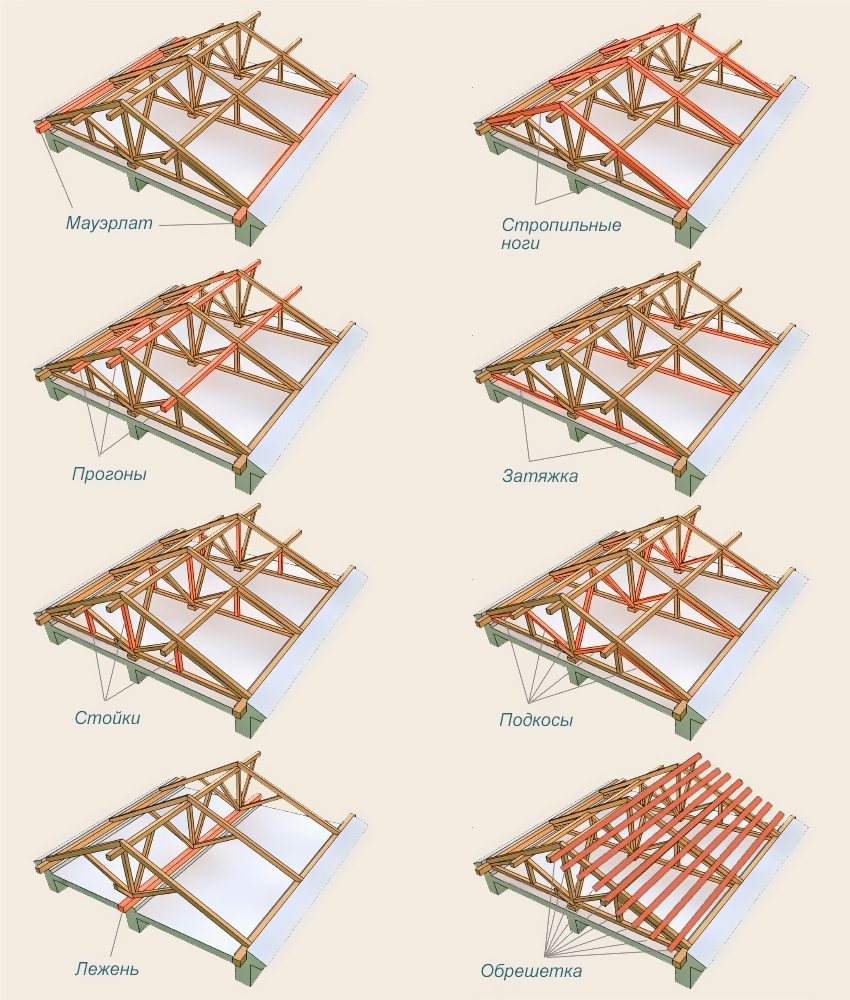 Sebarang bumbung terdiri daripada 4 elemen utama: sistem kasau, peletakan, atap dan pedimen. Apakah semua elemen struktur ini?