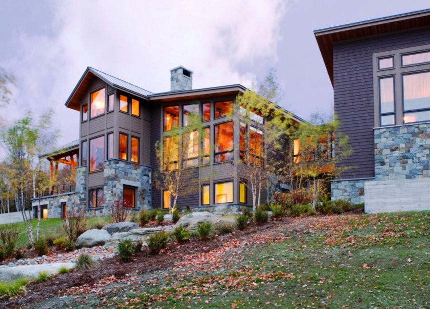 Arah gaya ini sangat sesuai untuk reka bentuk bangunan dua tingkat. Foto rumah indah jenis ini membolehkan anda menghargai semua aspek positifnya.