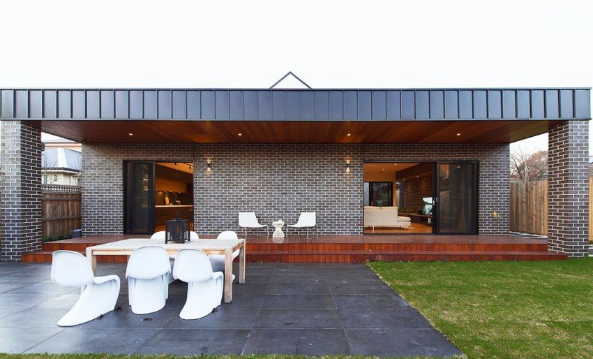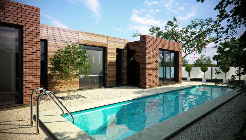 Yang paling penting, arah seni bina ini sesuai untuk bangunan satu tingkat. Foto rumah bata satu tingkat yang indah, dibuat dengan gaya minimalis, memungkinkan untuk menghargai kelebihannya.