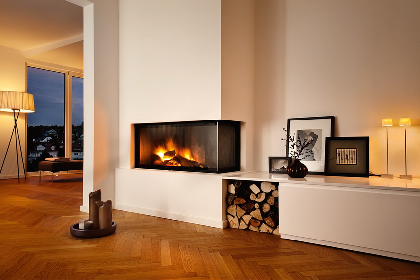 Reka bentuk dalaman ruang tamu dengan perapian dalam gaya moden