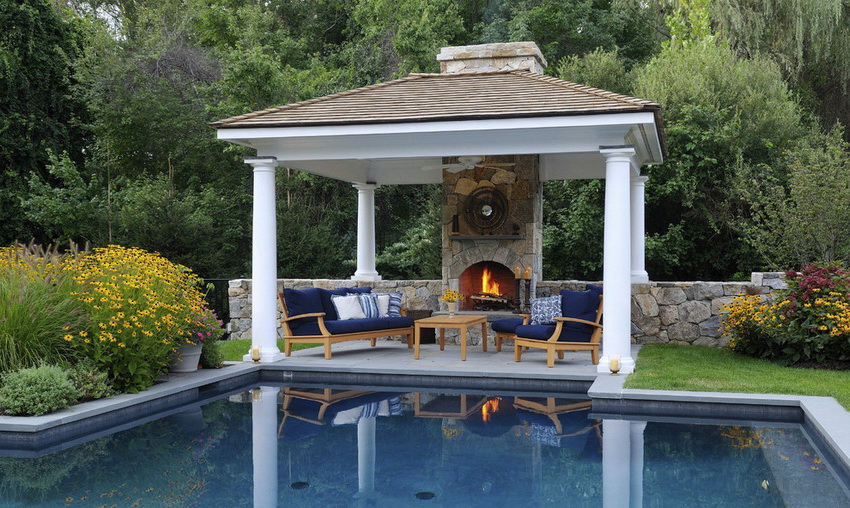 Nota! Sebelum memilih tempat untuk dapur musim panas pada susun atur laman web, anda harus menentukan angin naik. Ini dilakukan supaya asap dari dapur, barbeku atau barbeku tidak melalui laman web ini. Lebih baik jika dia segera jatuh di atas pagar.