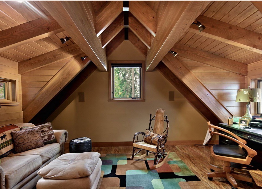 Semasa merancang rumah negara, mereka berusaha untuk menggunakan ruang tamu loteng di bawah bumbung secara maksimum. Ketinggian bilik seperti itu kadang-kadang boleh mencapai lima meter, dan di bawah jurang tujuh meter atau lebih.