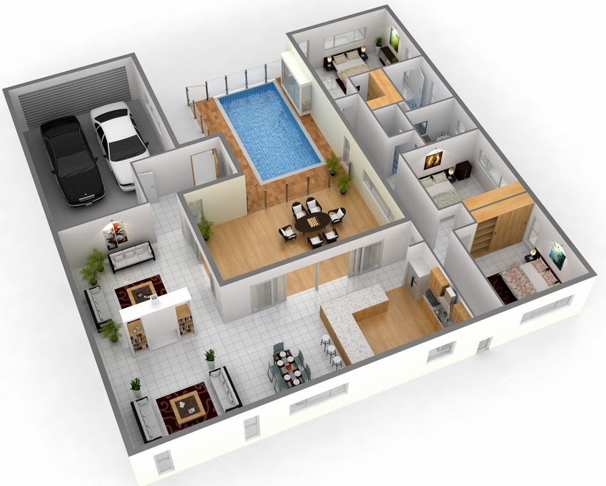 - susun atur boleh ada, kerana tidak ada batasan pada penempatan bilik, ukurannya;