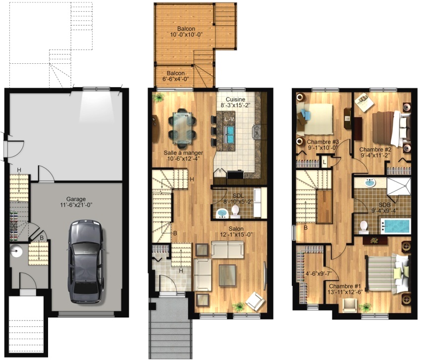Secara tradisional, di rumah dua tingkat, bilik peribadi disusun di tingkat atas, dan tingkat bawah adalah bilik umum dan utiliti.