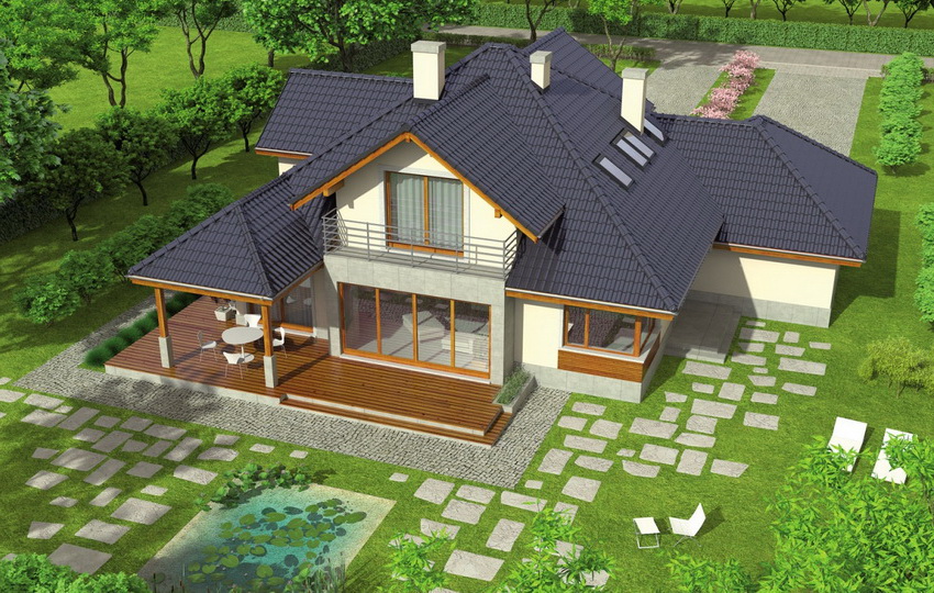 Projek rumah dua tingkat digunakan untuk membuat pondok besar, rumah desa dan bangunan di plot kecil.
