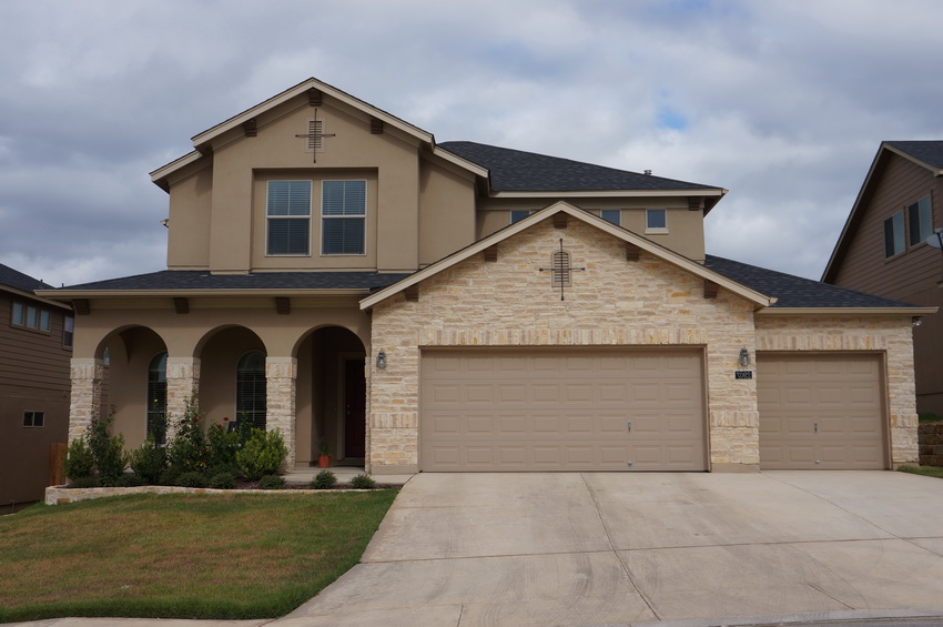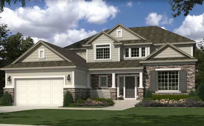 Projek rumah negara: gambar bangunan yang indah dengan garaj