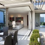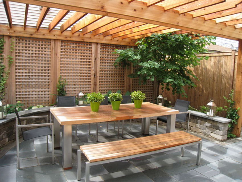 Teres dari bahagian dapur adalah peluang unik untuk memindahkan ruang makan di bawah langit terbuka pada musim panas