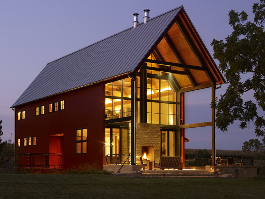 Dalam foto itu, projek rumah satu tingkat yang indah boleh kelihatan seperti ladang lama atau pondok ultra moden. Reka bentuk bangunan bergantung pada beberapa faktor: