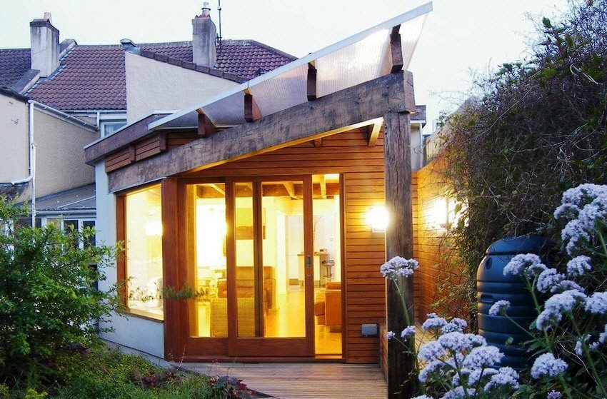 Kanopi yang diperbuat daripada polikarbonat kelihatan hebat di beranda rumah persendirian. Foto pelbagai pilihan yang ditunjukkan di bawah menunjukkan keunikan penyelesaian gaya. Bangsal seperti itu tidak memerlukan syarat khas, ia tahan dengan baik pada hari-hari terpanas dan suhu bawah sifar yang serius. Kerana bahan penutup yang ringan, mereka boleh dilekatkan secara bebas ke dinding rumah tanpa sokongan tambahan.