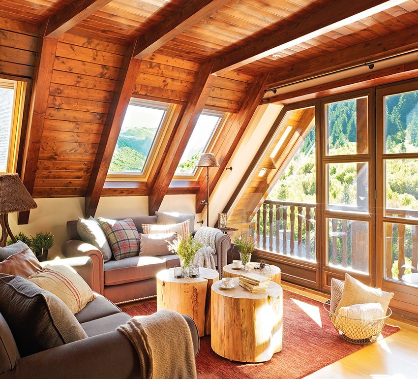 Semasa membuat reka bentuk loteng di rumah persendirian, terutama ketika datang ke pondok yang terbuat dari kayu, perlu dipertimbangkan bagaimana sebenarnya ruang ini akan digunakan dan gaya dalamannya.