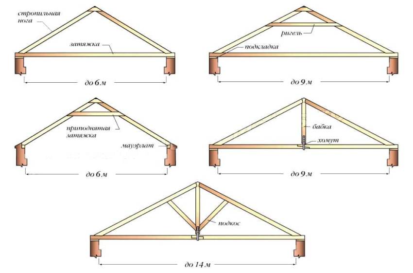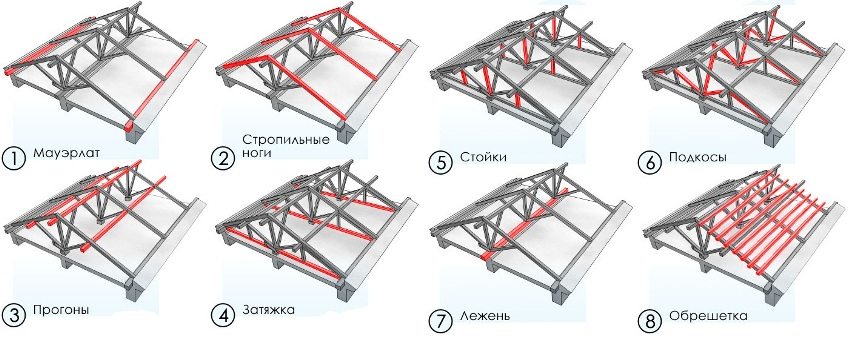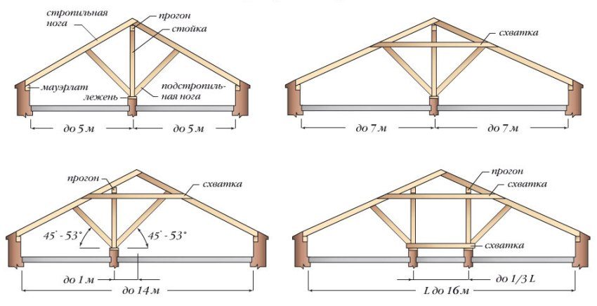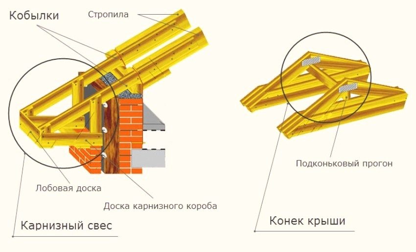 - penyangga menghubungkan kaki kasau dengan elemen sokongan yang tegar: tegak dan hembusan. Ini meningkatkan ketegaran struktur beberapa kali;