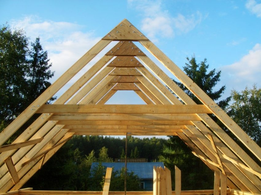 Mengenai ini, peranti elemen sokongan utama boleh dianggap lengkap. Langkah seterusnya dalam pembinaan sistem atap gable dengan tangan anda sendiri adalah pemasangan kasau.