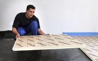Pemanasan dengan papan busa di bawah permukaan lantai. Menjalankan penebat berfungsi dengan bantuan penoplex di bawah lapisan lantai klasik dan meratakan diri.