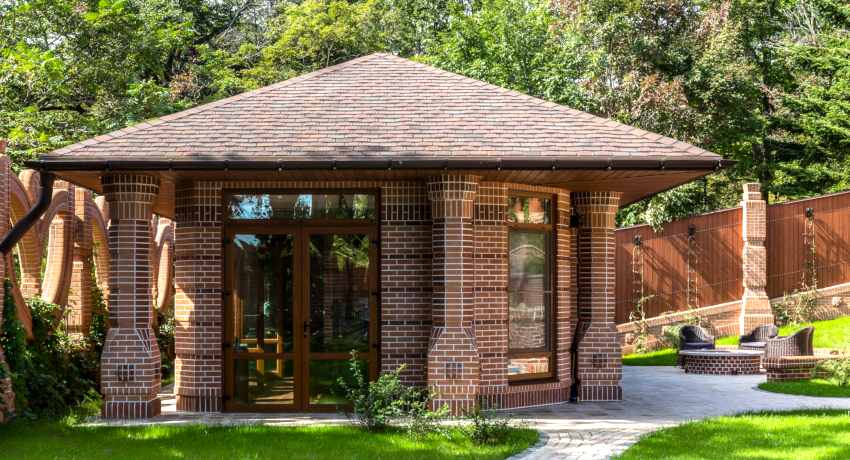 Gazebo bata: kelebihan struktur. Kaedah utama penciptaan dan jenis struktur. Bagaimana membuat asas dan bahan binaan apa yang hendak dipilih. Reka bentuk yang cantik.