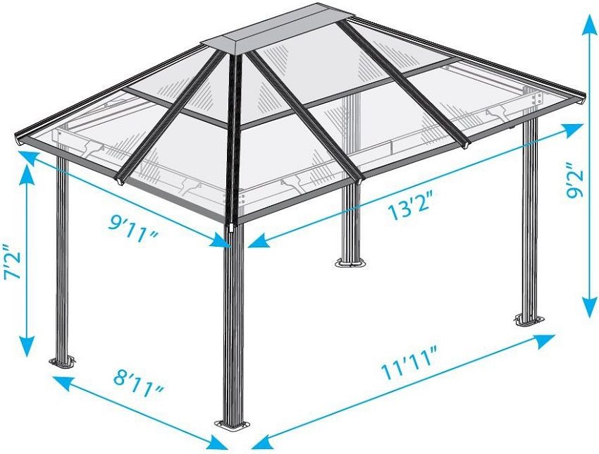 Kerana kemudahan membina polikarbonat, anda boleh memasang gazebo dengan tangan anda sendiri dalam satu hari. Ia mudah dipasang, tidak memerlukan alat khas, serta kemahiran profesional khas. Cukup untuk bertanya tentang beberapa peraturan dan cadangan untuk pemasangan. Oleh kerana ringannya bahan, tidak perlu membina asas besar untuk struktur polikarbonat.