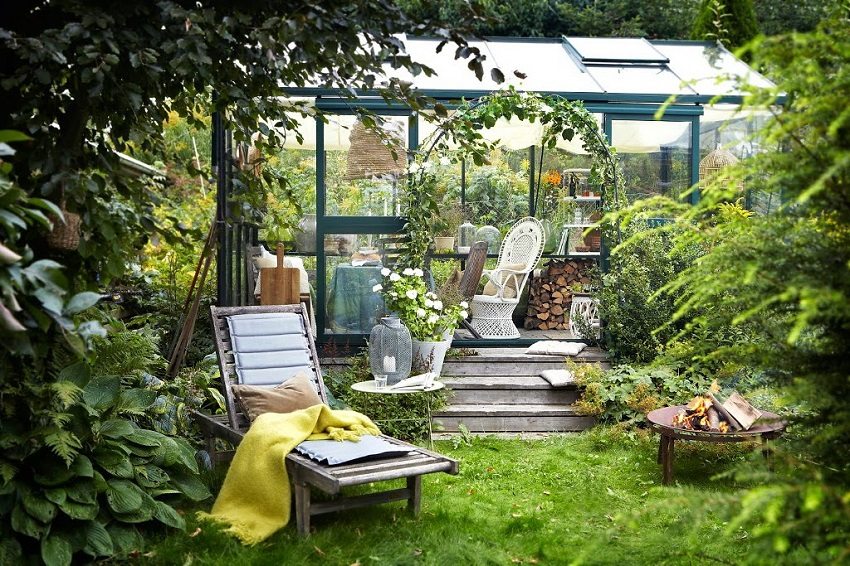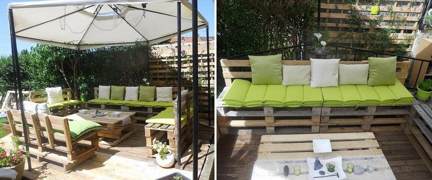 Sentuhan terakhir dalam susunan gazebo akan mengisinya dengan perabot. Dalam gazebo seperti itu, perabot yang dibuat sendiri akan wujud dengan sempurna: dari palet yang sama, anda boleh membuat kerusi yang selesa, meja atau kaunter bar yang asli. Perabot taman siap pakai secara organik akan masuk ke dalam bilik ini. Ini boleh menjadi pilihan untuk kerusi yang selesa dan lembut, kerusi berjemur atau perabot rotan.
