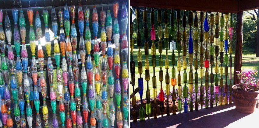 Struktur yang diperbuat daripada botol kaca atau plastik dibezakan dengan reka bentuk asalnya. Bagi produk untuk kebun dan kebun sayur, maka sebenarnya tidak ada batasan kreativiti. Malah penutup plastik digunakan, dari mana mosaik unik dipasang. Apa jenis aksesori dan elemen hiasan dari botol plastik yang tidak dilakukan. Pengrajin dari semua perdagangan dan pembuatan gazebo dari mereka tidak melupakan perhatian mereka.