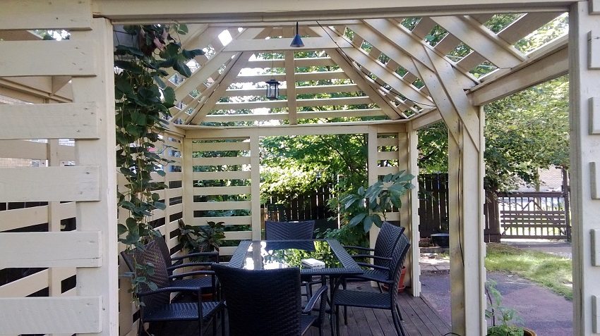 Buat sendiri gazebo dari bahan sekerap: gambar keputusan yang tidak dapat diramalkan