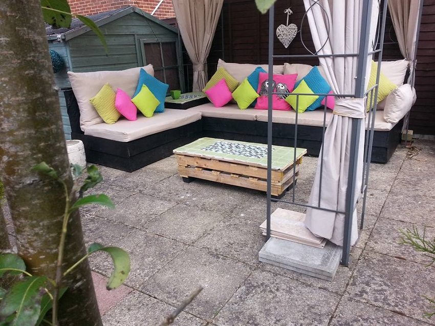 Gazebo palet sendiri. Foto reka bentuk reka bentuk asal