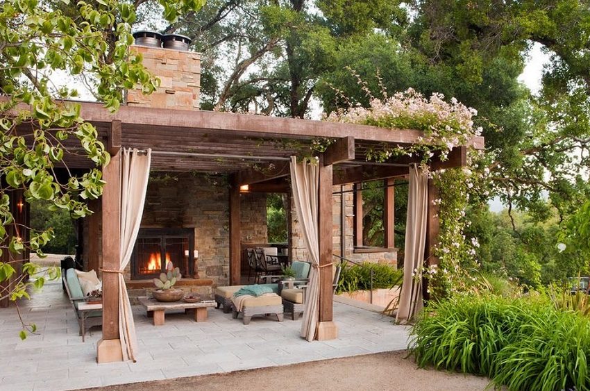 Kayu adalah bahan yang paling popular untuk pembinaan lorong. Pelbagai elemen kayu dalam bentuk kayu balak, papan, bar, papan lapis terdapat di halaman mana saja. Kayu mudah diproses, alat yang diperlukan untuk pembinaan struktur kayu berada di gudang hampir setiap pemiliknya. Pergolas diperbuat daripada kayu tahan lama dan sesuai dengan organik mengikut reka bentuk kawasan pinggir bandar.