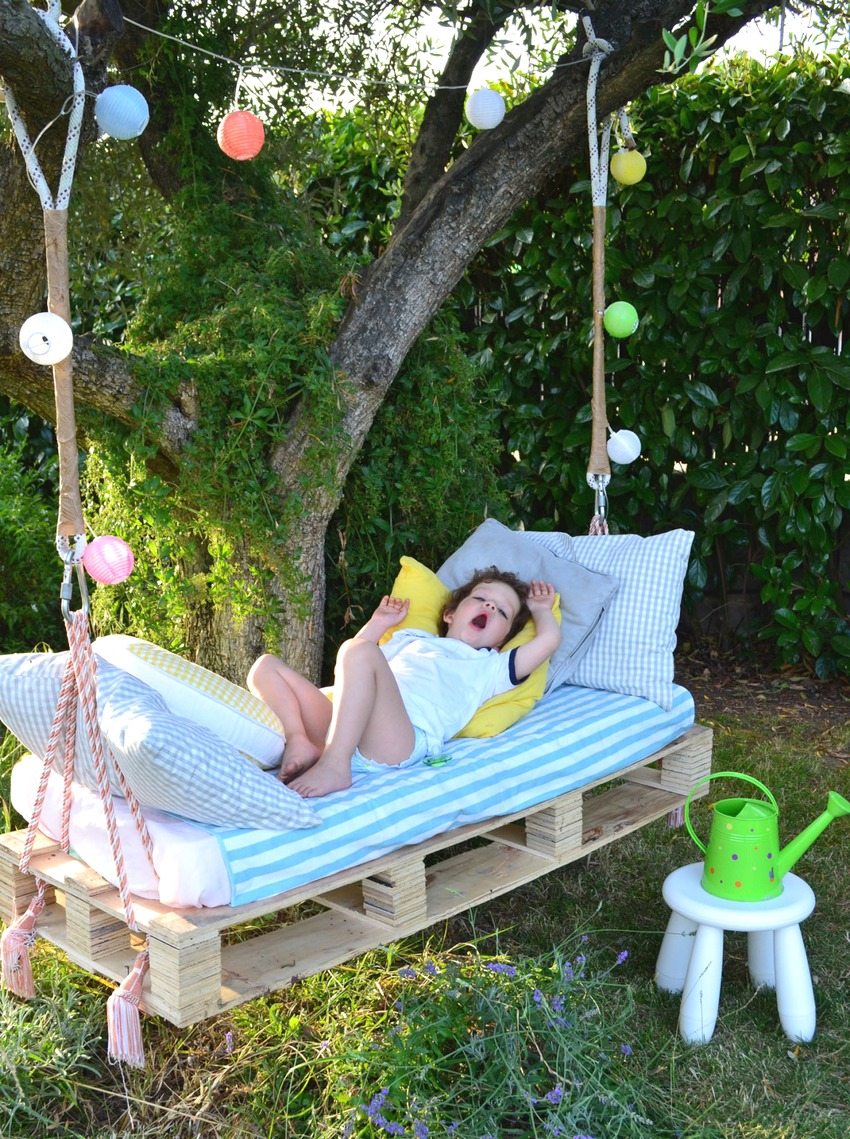 Palet adalah jenis bahan yang sangat popular dari mana perabot rumah dan taman dibuat. Oleh kerana serba boleh, mereka juga dapat digunakan untuk mengatur ayunan di kawasan pinggir bandar. Untuk melakukan ini, anda harus mempunyai satu palet, tali dan pokok di mana strukturnya akan digantung.