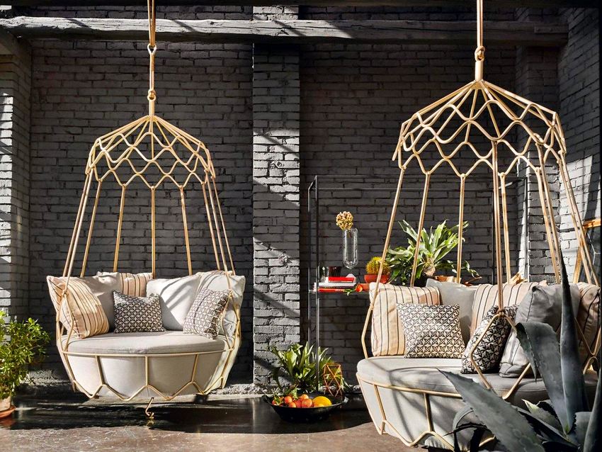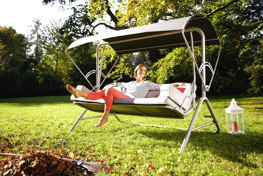 - kerusi berjemur - produk boleh memuatkan keluarga dua orang dewasa dan seorang kanak-kanak. Ayunan mempunyai reka bentuk khas, yang melibatkan pemasangan pada satu titik pemasangan, yang membolehkannya dipasang di dalam bilik. Bahan untuk pembuatannya adalah aloi logam khas. Walaupun kelihatan lapang, produk ini sangat tahan lama.