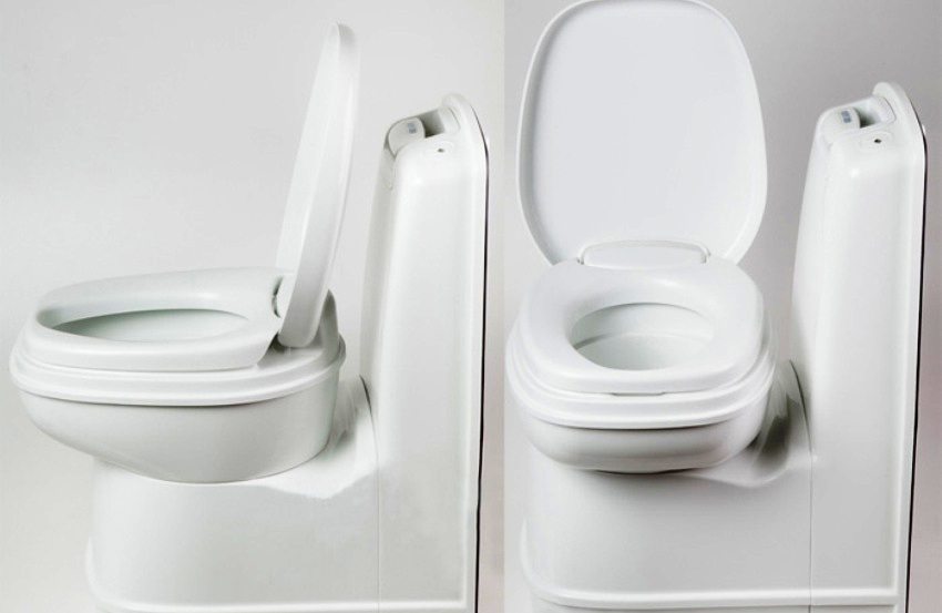Pilihan ini sangat sesuai untuk pondok musim panas, di mana mungkin untuk menyambungkan tandas elektrik ke rangkaian. Kos peranti sedemikian sedikit menjengkelkan, kerana cukup tinggi, jadi tidak semua keluarga dapat memperoleh kemewahan seperti itu.