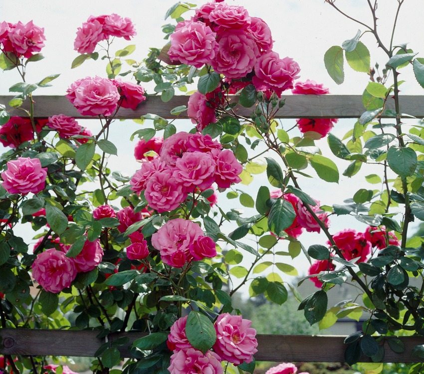 Mawar memanjat ditanam berhampiran pagar pergola atau lengkungan