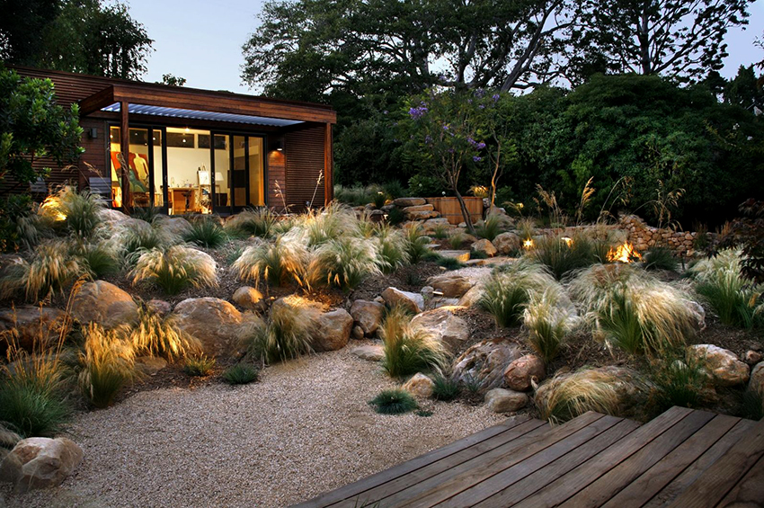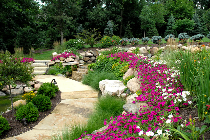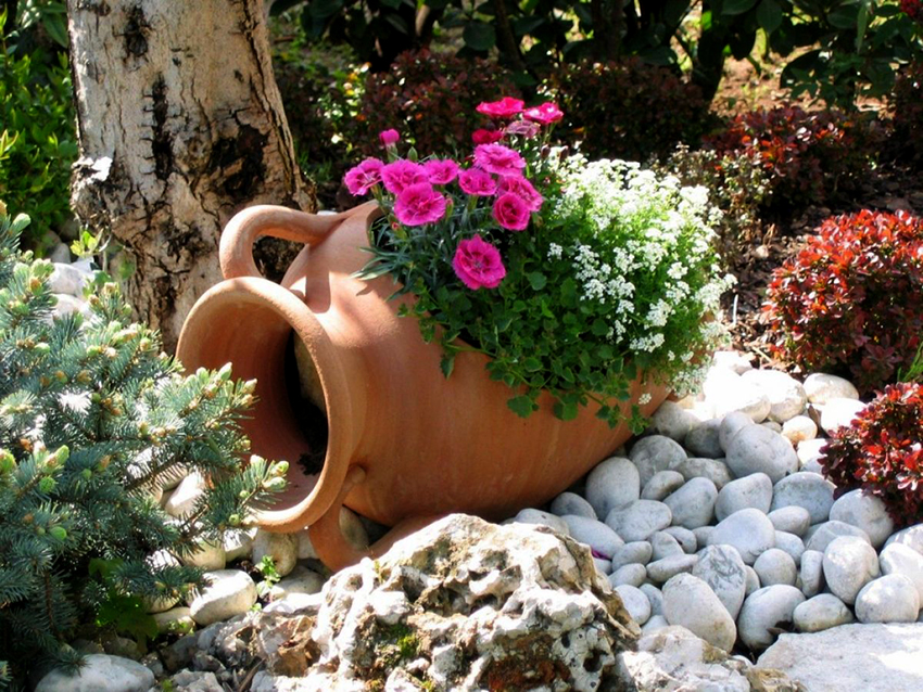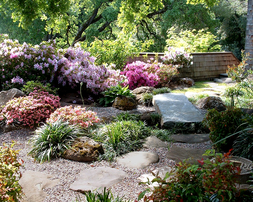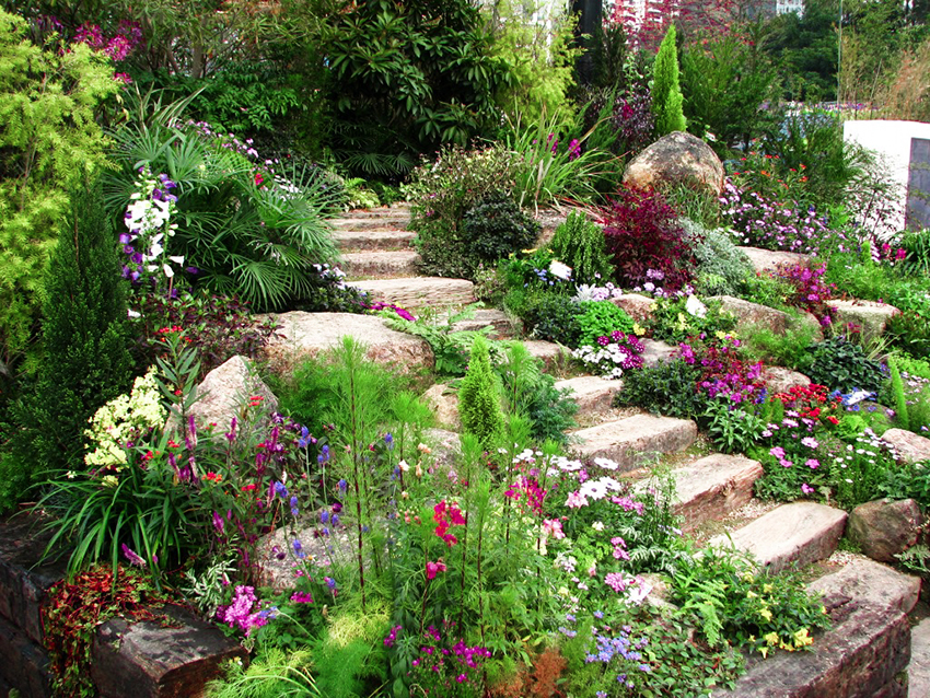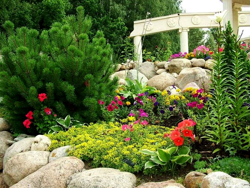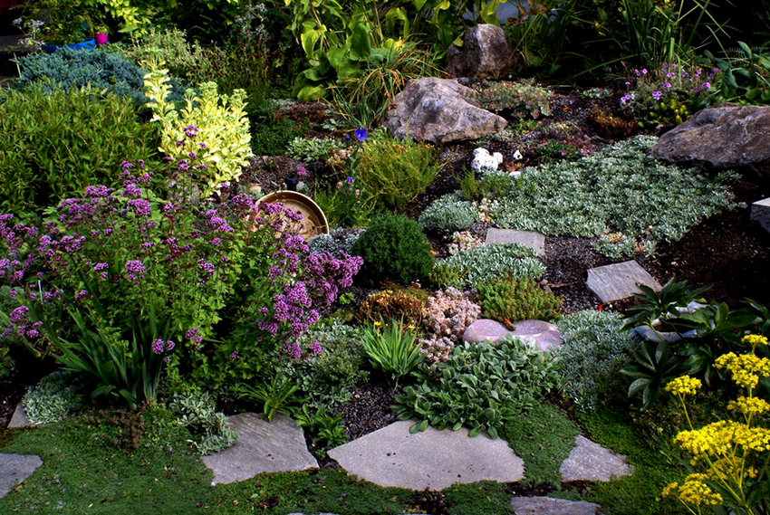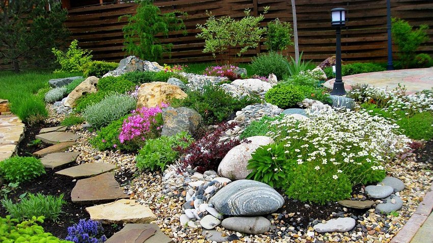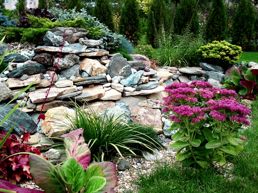 Untuk rockeries, anda boleh menggunakan kawasan rata, atau anda boleh membuat cerun buatan kecil. Perhatian khusus harus diberikan kepada batu - kedua batu dan kerikil harus sesuai dengan satu sama lain.