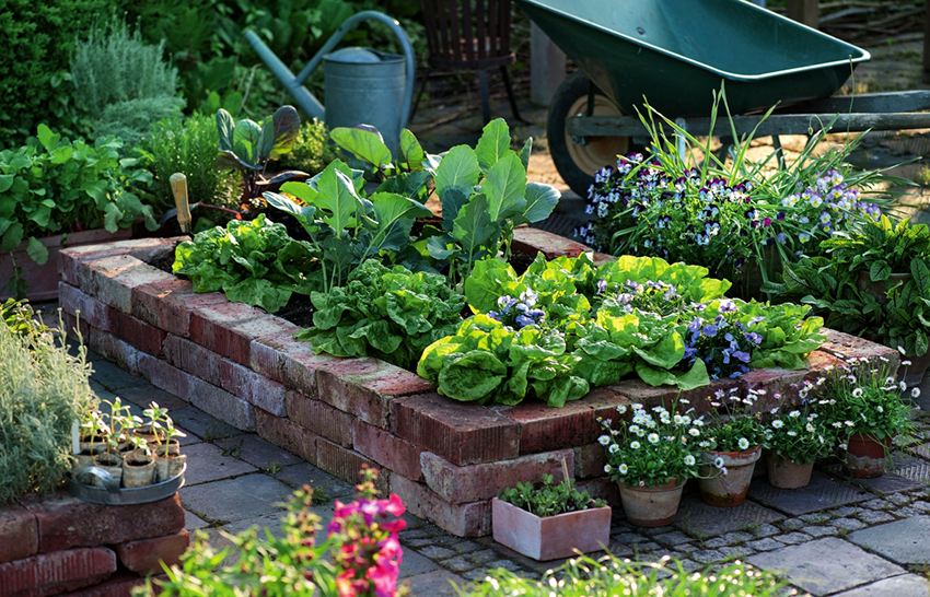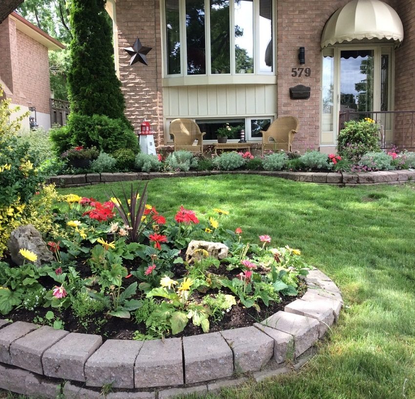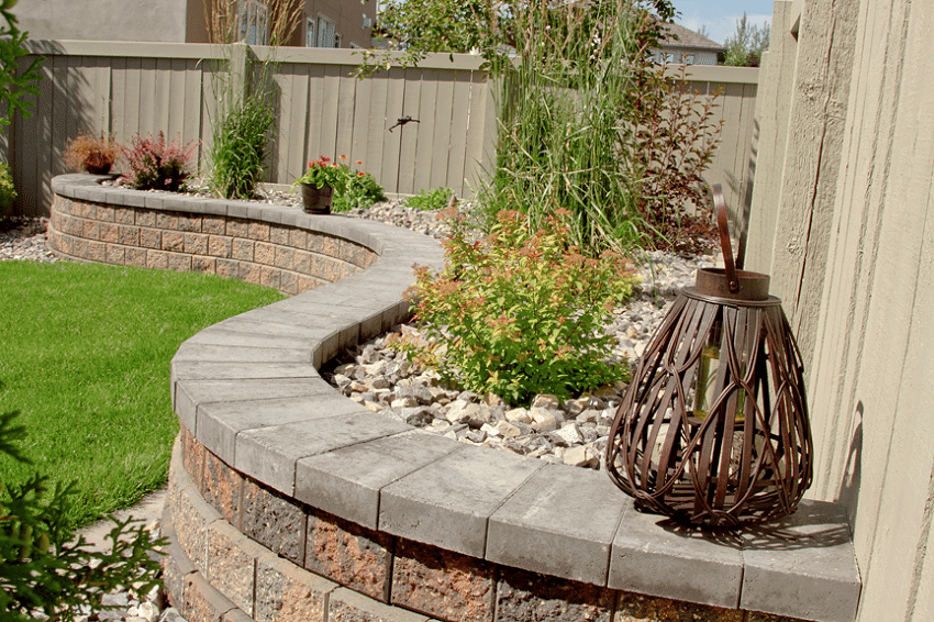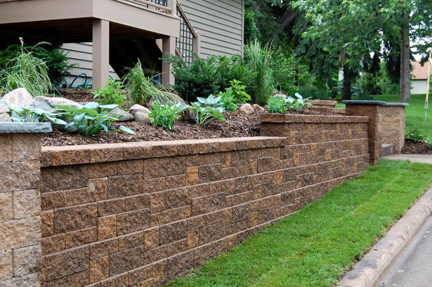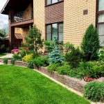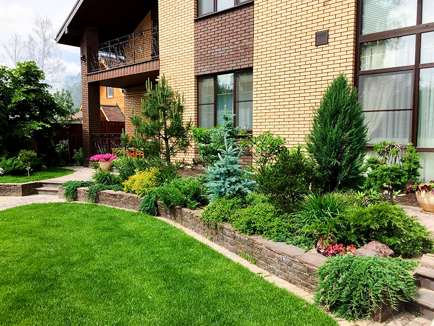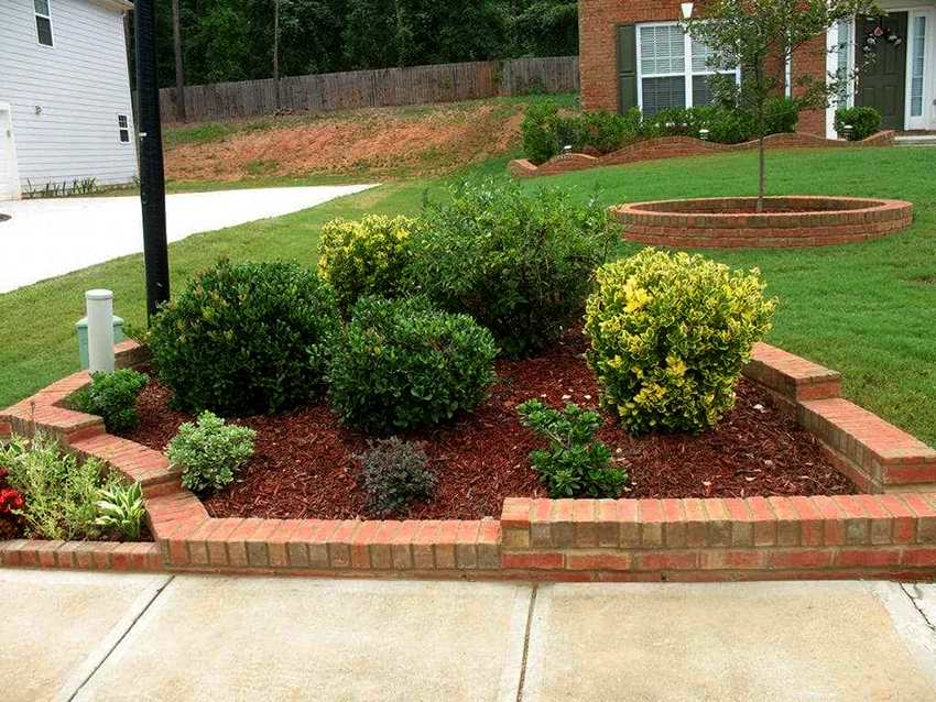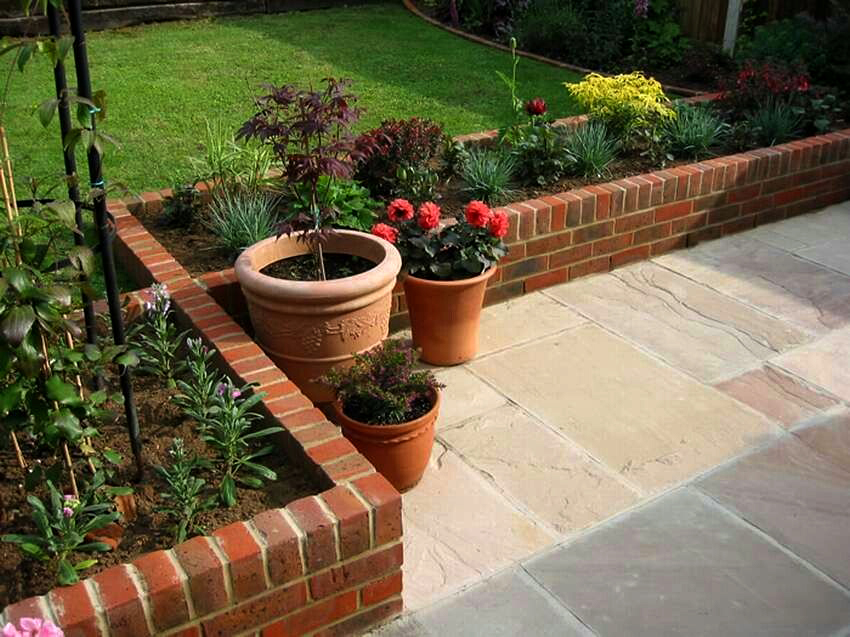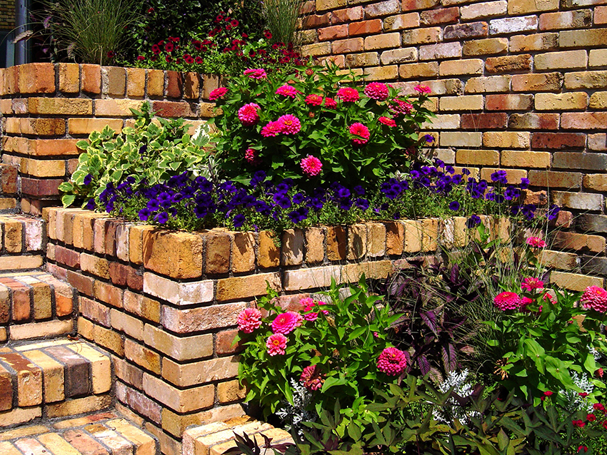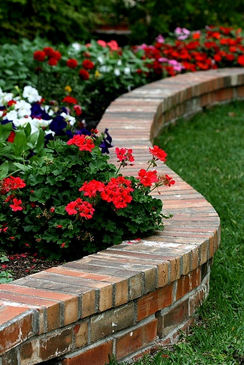 Tempat tidur bunga yang dipagari dengan dinding bata akan menjadi tambahan indah di halaman rumah persendirian