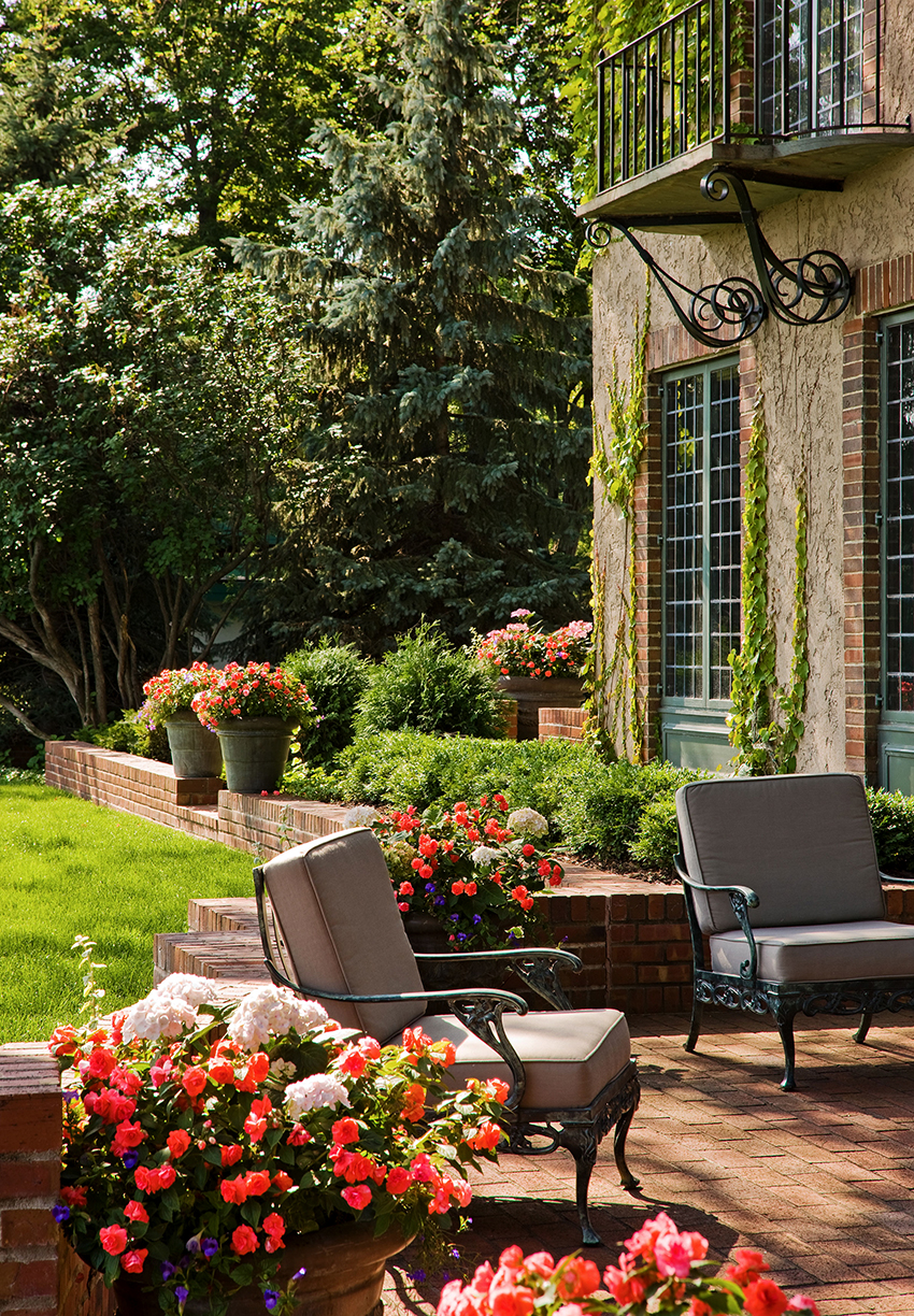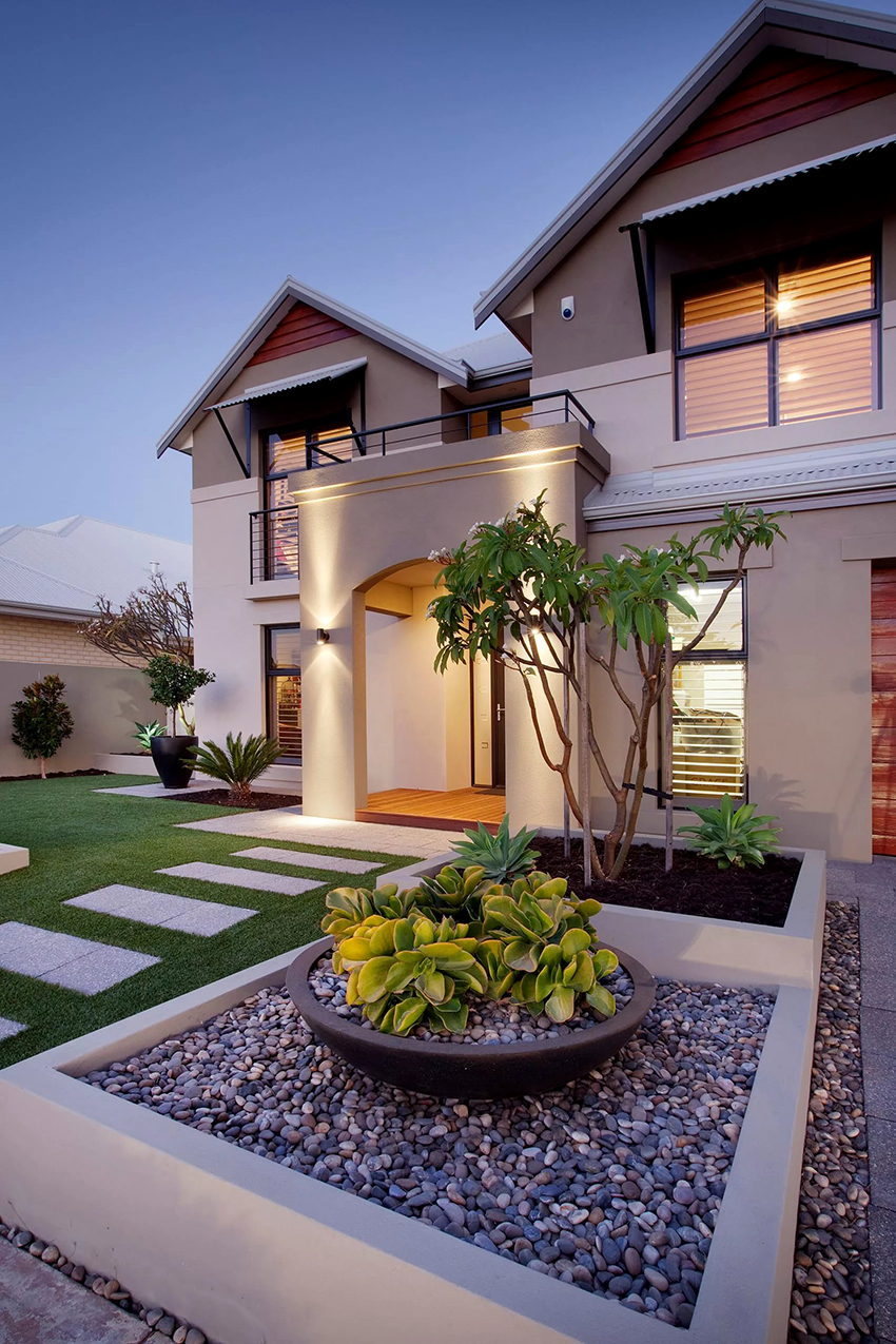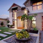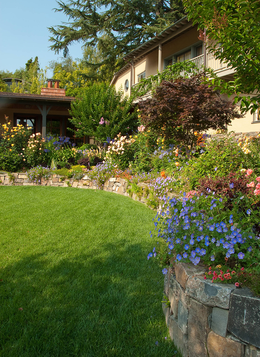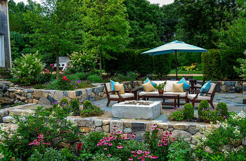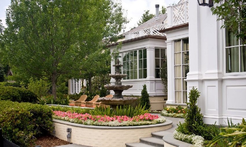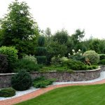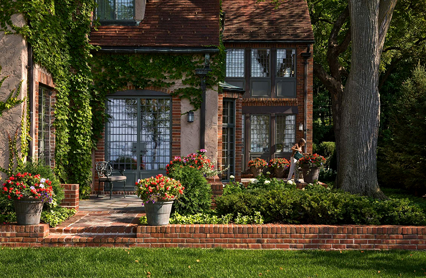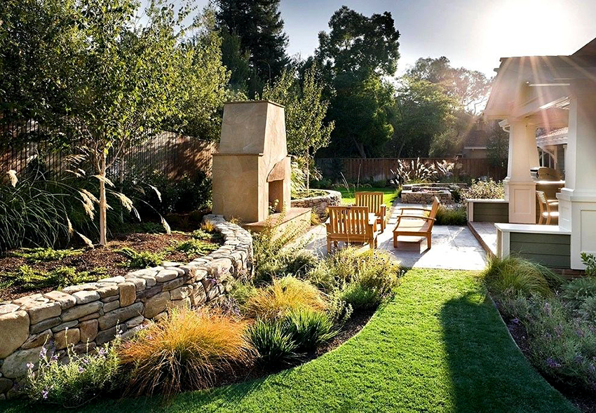 Tempat tidur bunga yang dipagari dengan dinding bata akan menjadi tambahan indah di halaman rumah persendirian